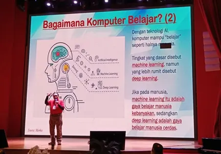 Untuk menguatkan pandangannya, Riri Satria juga menyinggung sejarah AI. Dari tahun 1958 ketika komputer pertama kali diajar bermain catur di mainframe IBM 704, hingga 1997 saat Deep Blue mengalahkan Garry Kasparov.