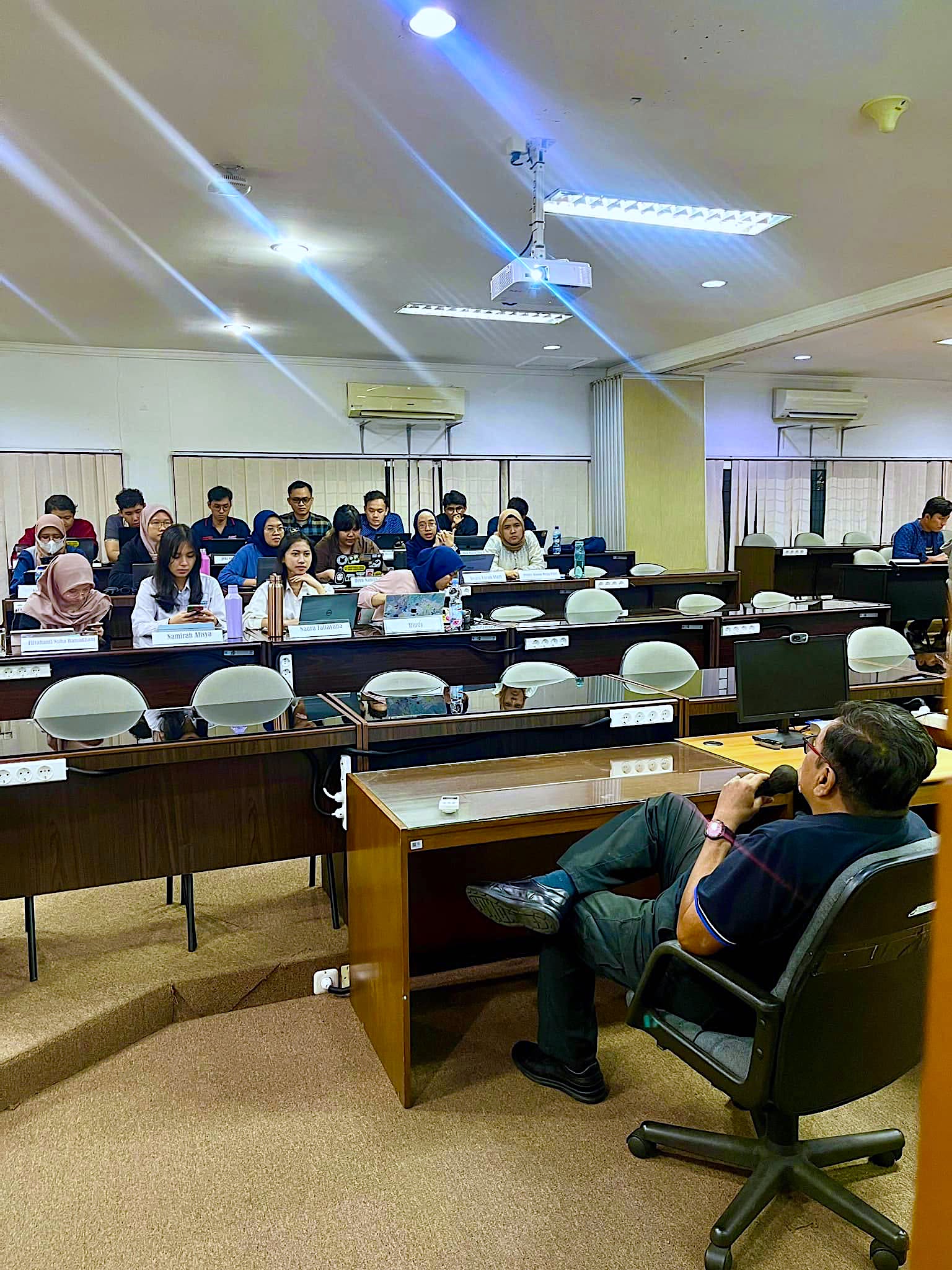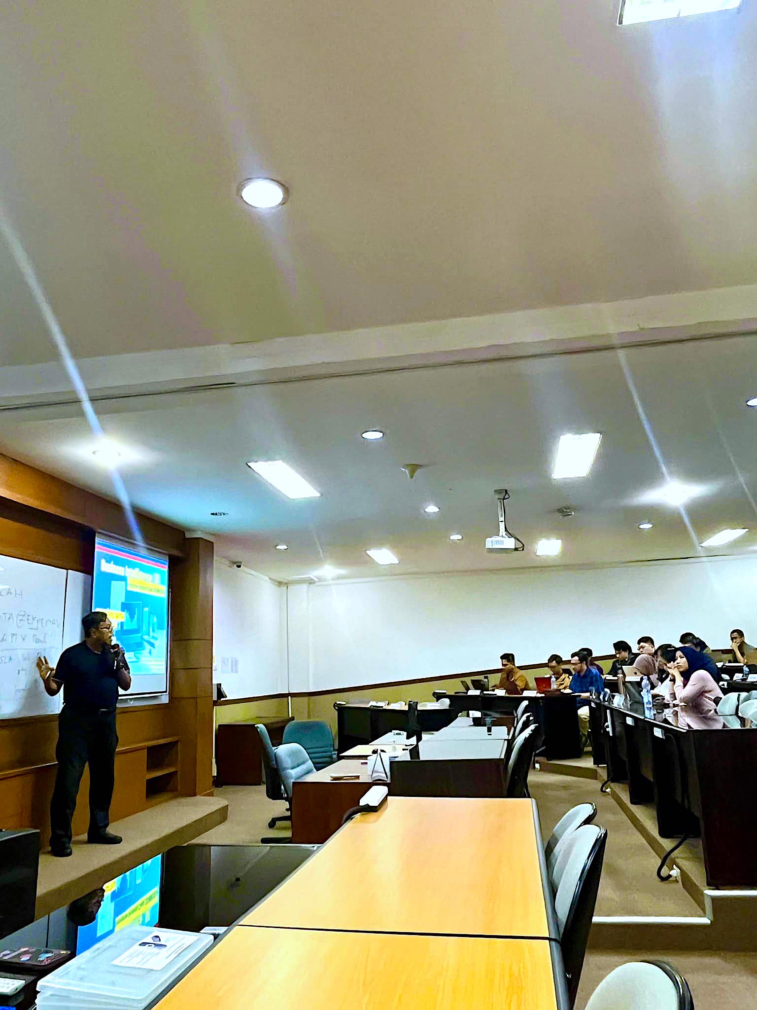 Saya jelaskan lebih lanjut, "Tugas saya sebagai dosen adalah menjadi fasilitator Anda semua dalam belajar, semacam learning partner. Dengan demikian, belum tentu seorang dosen itu lebih pintar dari Anda.