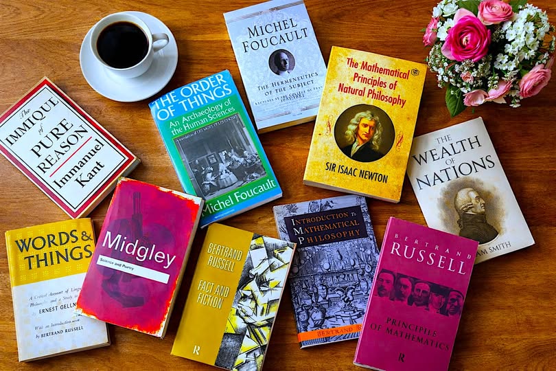 Nama Bertrand Russell muncul berulang dan memang ada beberapa buku. Dalam "Fact and Fiction", lalu "Introduction to Mathematical Philosophy", hingga "Principia Mathematica". Russell bagi saya adalah jembatan antara ketelitian logika dan keberanian moral untuk bersikap kritis. Ia mengajarkan bahwa berpikir jernih adalah bentuk etika, dan bahwa kerumitan intelektual tidak harus menjauhkan kita dari kemanusiaan.