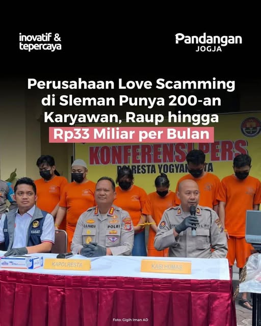 Foto konferensi pers kepolisian yang memperlihatkan pengungkapan perusahaan love scamming di Sleman menampar kesadaran kita dengan keras. Deretan tersangka berbaju oranye di belakang para pejabat kepolisian bukan hanya sekumpulan pelaku kejahatan.
