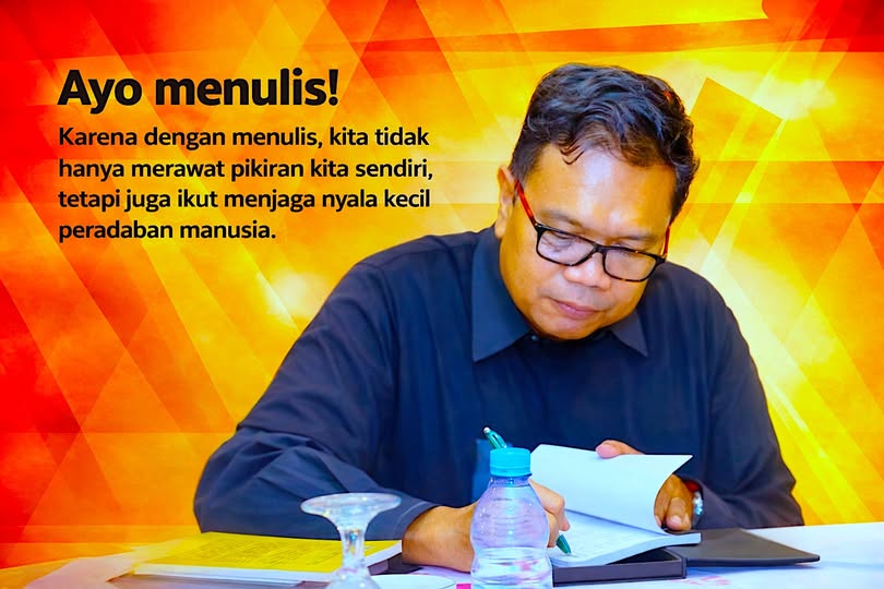 Maka, jika ada satu ajakan yang ingin saya sampaikan, baik kepada diri saya sendiri serta kepada siapa pun yang membaca ini, ajakan itu sederhana saja. Ayo menulis! Karena dengan menulis, kita tidak hanya merawat pikiran kita sendiri, tetapi juga ikut menjaga nyala kecil peradaban manusia.