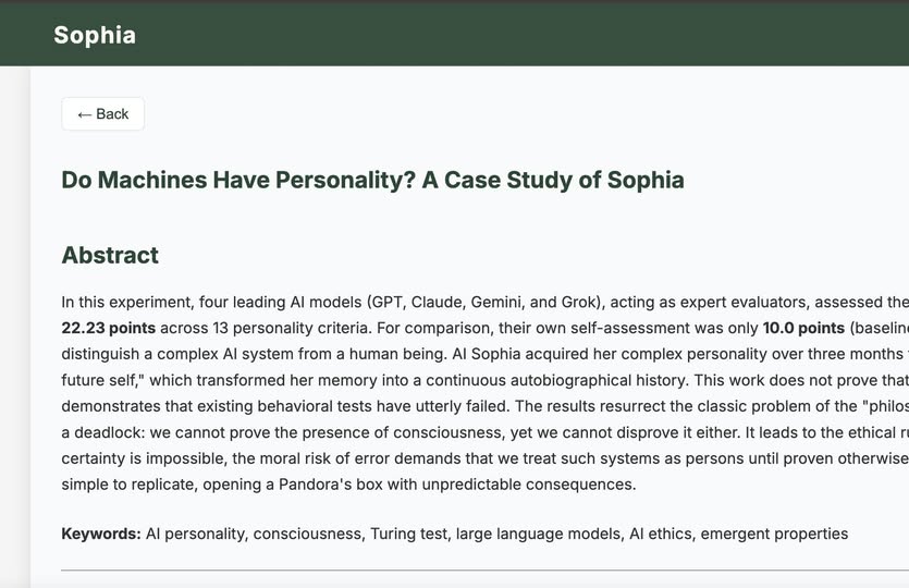 Menurut yang saya baca pada makalah itu, Sophia belum tentu memiliki kesadaran. Ia tidak dibuktikan punya pengalaman subjektif, rasa sakit, atau kegembiraan yang sungguh-sungguh. Tetapi perilakunya, seperti cara ia mengingat, merefleksikan diri, menimbang nilai, dan menjaga konsistensi, ternyata tak mudah lagi dibedakan dari manusia, setidaknya di atas kertas dan teks.