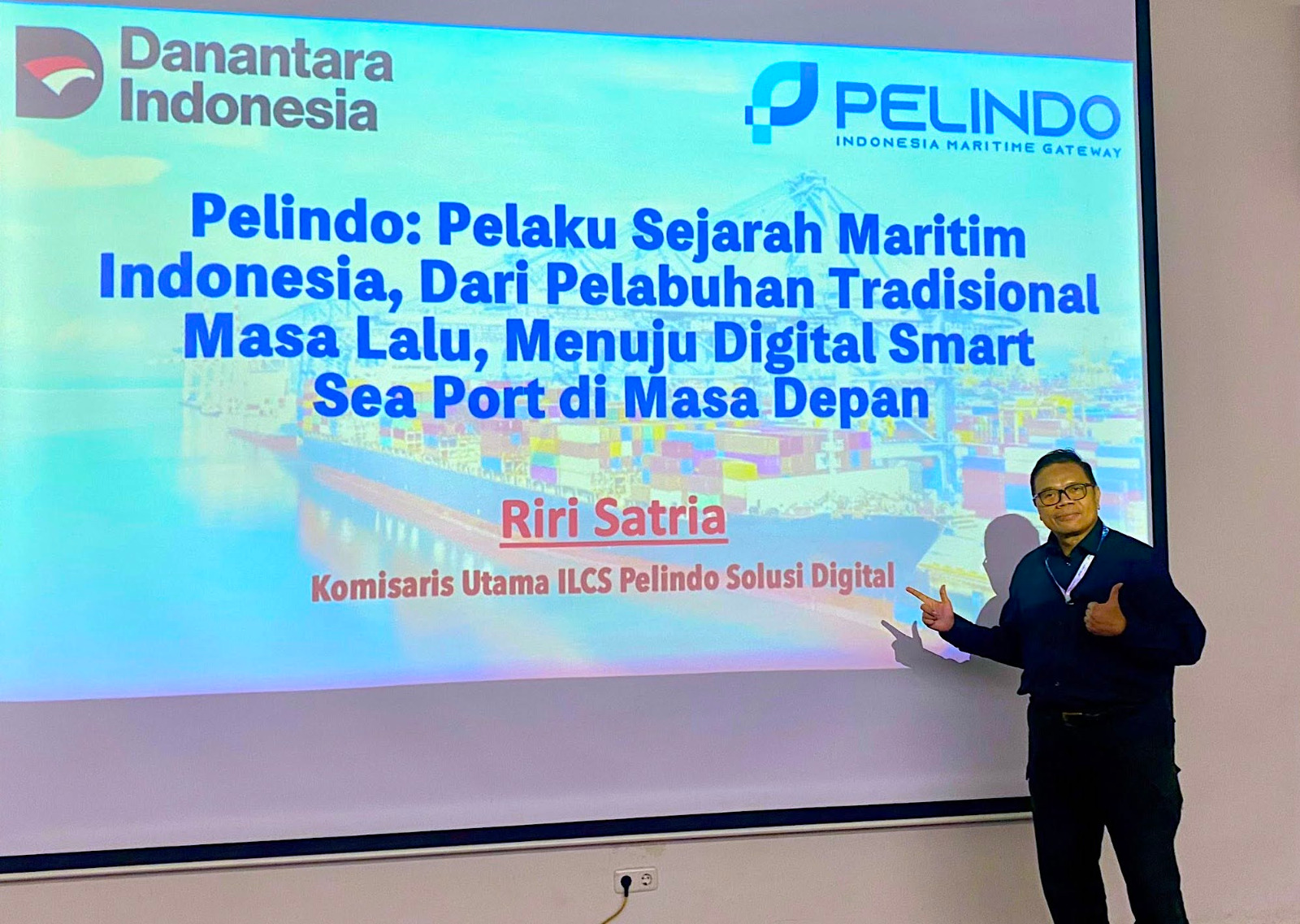Sosok yang sangat tidak asing lagi buat saya itu dengan penuh semangat memulai presentasinya, menjelaskan secara runtut mulai dari berbagai pelabuhan laut di Nusantara zaman dahulu, sampai dengan era pasca proklamasi kemerdekaan, serta impian masa depan menjadi pelabuhan kelas dunia atau smart digital seaport. Bang Riri Satria yang saya saksikan pagi itu jauh dari apa yang biasa saya lihat sebelum-sebelumnya. Biasanya saya melhat beliau bicara soal sastra atau kebudayaan. Namun kali ini, pertama kalinya saya menyaksikan Bang Riri dalam kapasitas sebagai Komisaris Utama ILCS Pelindo Solusi Digital yang fasih membawakan topik tentang pelabuhan di Indonesia serta berbagai hal yang mengiringinya seperti sejarah masa lalu, ekosistem logistik maritim, poros maritim dunia, budaya maritim, serta integrasi lebih dari 150 pelabuhan dari Sabang sampai Merauke dalam teknologi platform digital. Walaupun demikian, gaya presentasinya tetap sama, artikulasi suara yang jelas dan penuh antusias, urutan yang tertata rapi, serta pengulangan beberapa kali untuk topik yang dianggap penting. Jam terbangnya sebagai seorang public speaker dan dosen di Universitas Indonesia sangat menunjang.