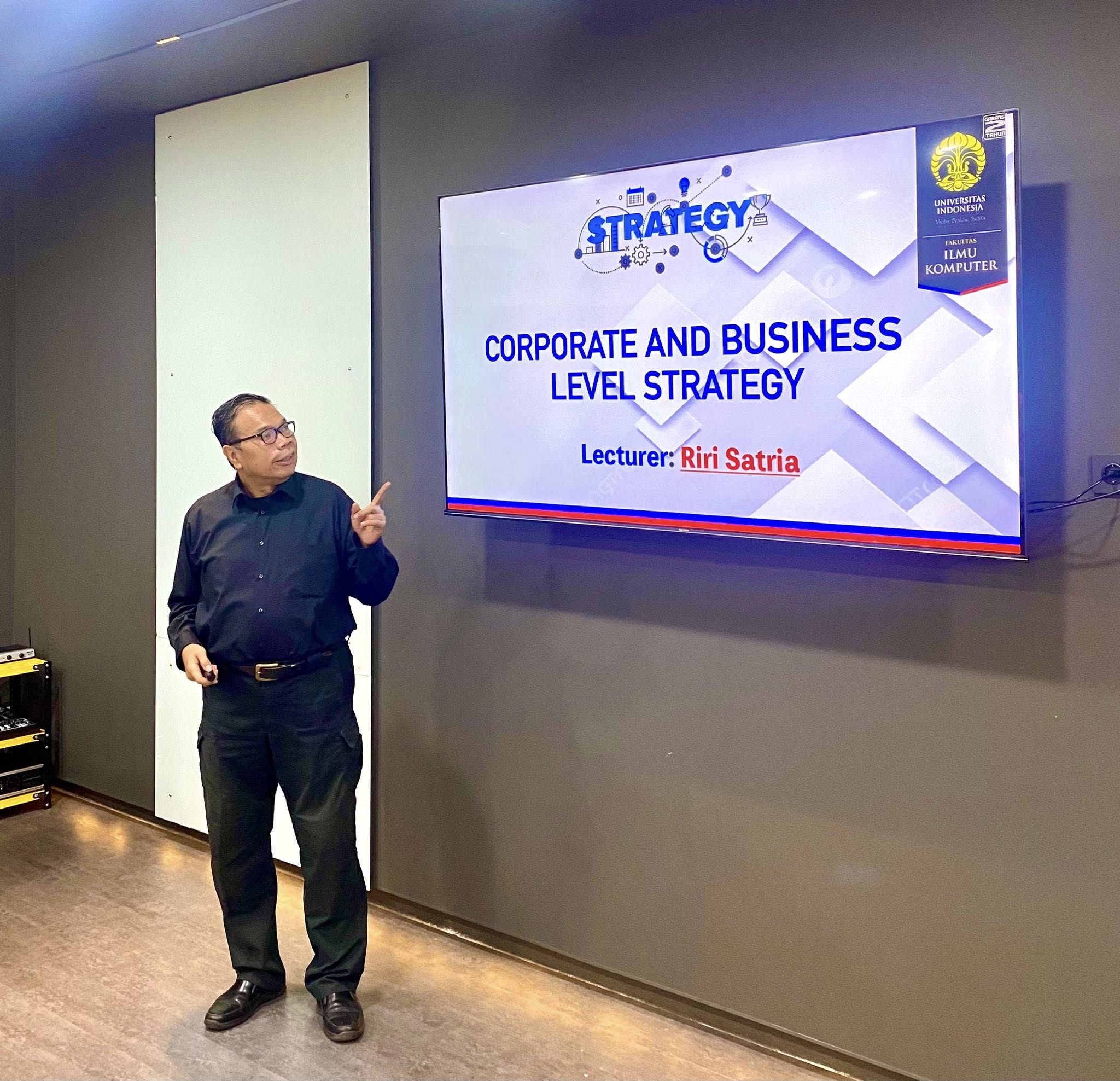 Ini adalah tugas pengajar pertama saya di bulan Ramadan. Pada sesi ini saya membahas topik tentang corporate strategy dan business strategy bersama para mahasiswa Program Magister Teknologi Informasi di Fakultas Ilmu Komputer Universitas Indonesia. Sementara itu functional strategy akan dibahas minggu depan.