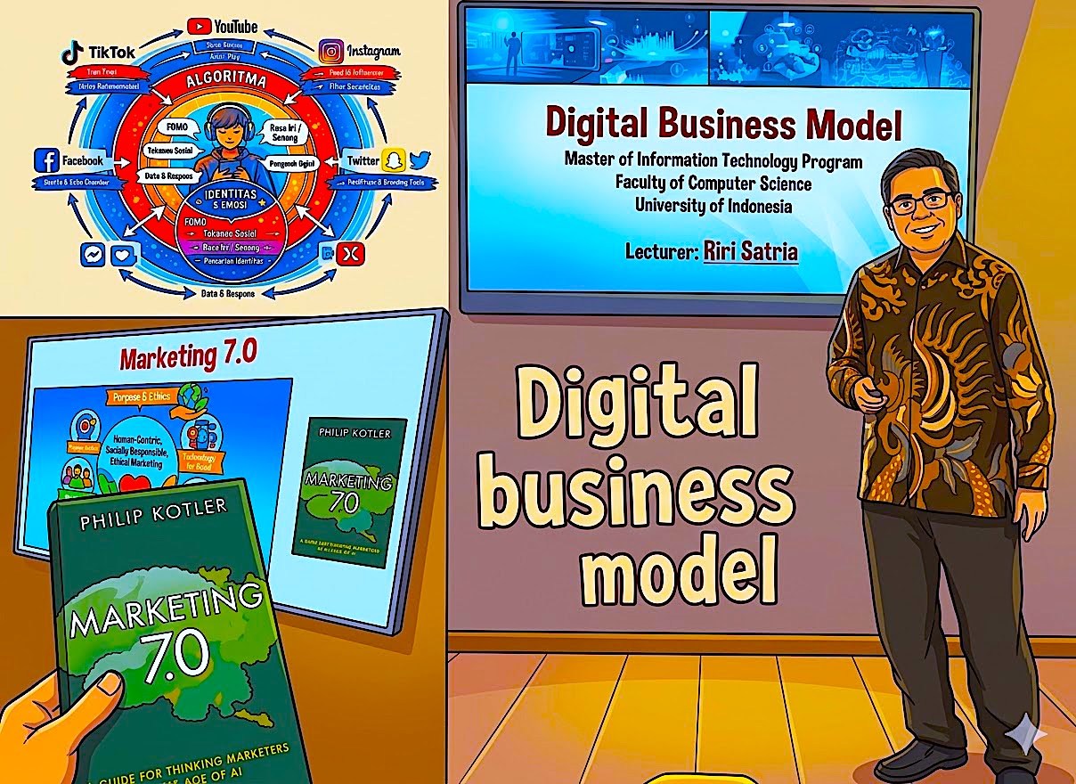 Dalam kuliah itu, saya juga mengajak mahasiswa untuk menyinggung satu gagasan yang semakin sering dibicarakan dalam dunia bisnis kontemporer, yaitu konsep Marketing 7.0, sebuah tahap evolusi pemasaran yang berupaya memahami manusia dalam ekosistem teknologi yang semakin cerdas dan saling terhubung.