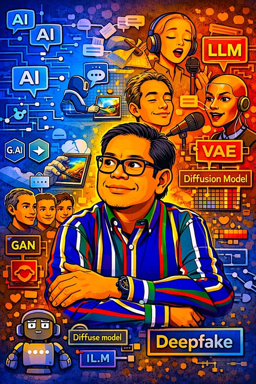 Namun di balik berbagai istilah yang sering disebut generative AI, generative adversarial network (GAN), large language model (LLM), diffusion model, variational autoencoder (VAE), dan deepfake, sering kali tersimpan kebingungan yang wajar pada yang awam, apakah semuanya sama, atau justru masing-masing berdiri di ruang yang berbeda?
