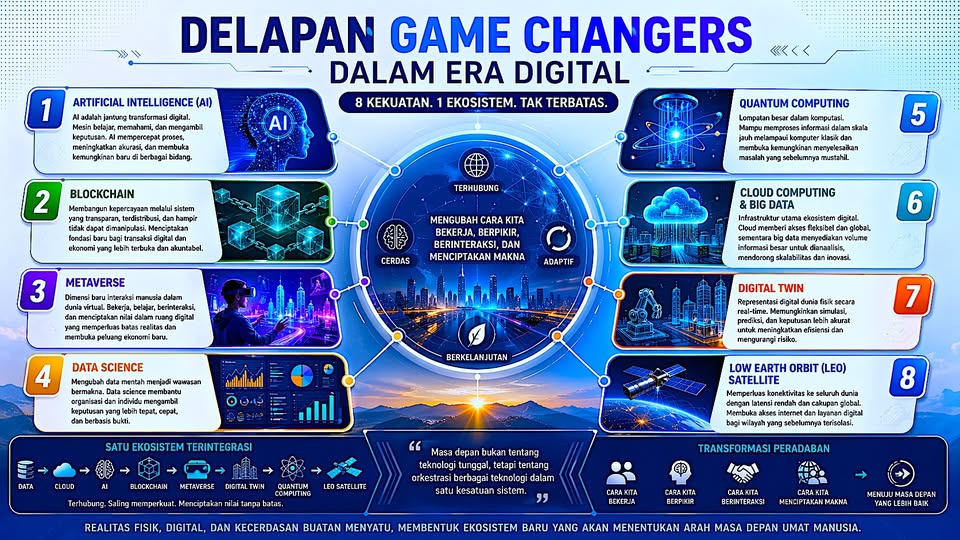 Pada akhirnya, delapan game changers ini bukan hanya tentang inovasi teknologi, tetapi tentang transformasi peradaban. Mereka mengubah cara manusia bekerja, berpikir, berinteraksi, dan menciptakan makna.