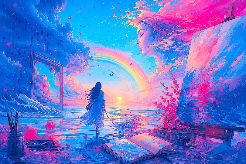 Hujan turun seperti larik-larik yang terlalu berat untuk diucapkan, sementara matahari menyelinap sebagai metafora yang terlalu terang untuk dijelaskan. Pelangi itu seperti puisi yang indah dari kejauhan, tetapi ketika didekati, maknanya terurai menjadi ambiguitas. Tidak bisa disentuh, hanya bisa ditafsirkan ulang, berulang kali, oleh pembaca yang berbeda, oleh saya yang terus berubah.