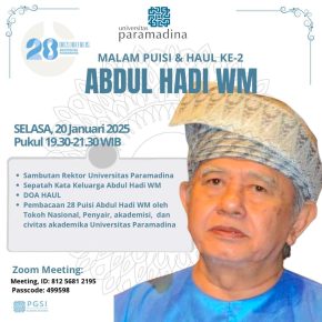 Terima kasih Universitas Paramadina atas undangannya unntuk ikut serta baca puisi karya Prof. Abdul Hadi WM, Guru Besar Universitas Paramadina serta penyair, budayawan, dan tokoh filsafat Islam di Indonesia. Acara diselenggarakan secara daring dalam rangka mengenang 2 tahun wafatnya Prof. Abdul Hadi WM serta Dies Natalis Universitas Paramadina ke-28. Saya kebagian membacakan puisi Prof. Abdul […]